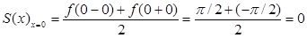 Во всех точках непрерывности функции f(x) ряд сходится к значениям функции в этих точках, т.е. S(x)=f(x) на интервале [0, ; в точке x=0 (точка разрыва функции) ряд сходится к 0, т.к.