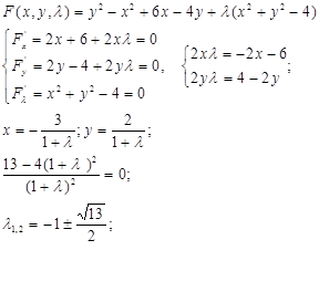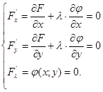 б). Находим точки в которых выполнено необходимое условие условного экстремума с помощью теоремы Лагранжа.