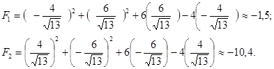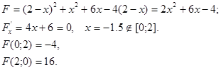 Находим значение функции в точках, в которых выполнено необходимое условие наличия экстремумов функции (точки попадания в данную область)