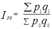 3. Общий индекс физического объёма товарооборота (количества проданных товаров) исчисляется по следующей агрегатной форме индекса Iq
