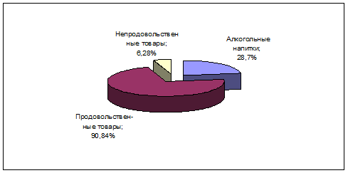 Из таблицы 2 видно, что продано больше всего по ОАО «Центральное» водки, сумма которой составила от продажи 2905 млн. руб., в удельном весе – 11,95% и колбасных изделий, сумма которых составила 2 776 млн. руб., в удельном весе – 11,42%. Из непродовольственных товаров продано больше всего табачных изделий, сумма которых составила 1350 млн. руб., в удельный вес которых составил – 5,5%. Из товарных запасов на складах остались в большом количестве: кондитерские изделия – 144 млн. руб., варенья и джемы – 144 млн. руб., и водка – 122 млн. руб.