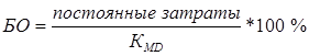 определяет, сколько продукции должно быть реализовано, для покрытия постоянных затрат (величина покрытия в натуральном выражении). Соотношение между постоянными издержками и КМД