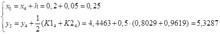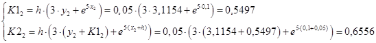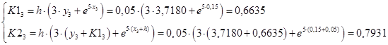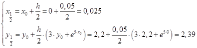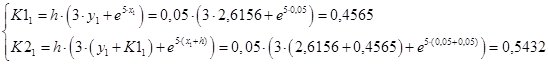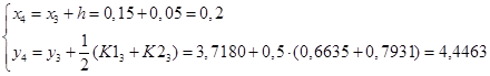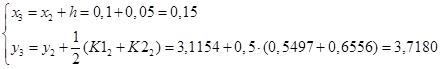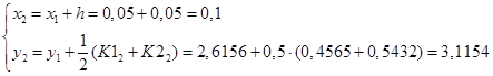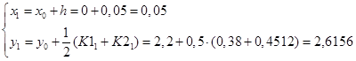 Запишем итерационные формулы улучшенного метода Эйлера – Коши.