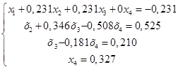 Вычтем полученные уравнения (1.3.), (1.4.), (1.5.) из второго, третьего и четвёртого уравнения системы (1.1.) соответственно, чтобы исключить из системы х1
