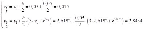 Запишем итерационные формулы модифицированного метода Эйлера.