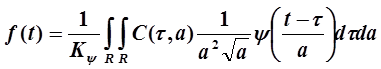 Обратное непрерывное вейвлет-преобразование осуществляется по формуле реконструкции во временной области. Одна из форм может быть представлена