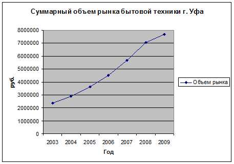 2) содержательный анализ данных об объеме рынка бытовой техники;