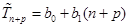Пусть прогноз величины на шагов вперед делается в момент времени (конец последовательности), при этом для прогнозирования используется трендовая модель. Период времени, на который делается прогноз, – в данном случае это – называется началом предсказания. Значение именуется дальностью прогнозирования. Для модели линейного тренда можно сделать прогноз, вычисляя значения по уравнению .