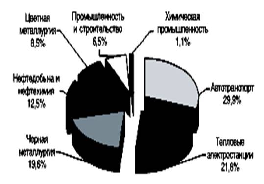 Рис. 1. Вклад различных отраслей промышленности в общее загрязнение атмосферы