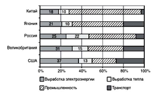 Рис. 1.2. Использование первичной энергии в различных странах, %.