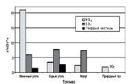 Сопоставление усредненных показателей по загрязнению атмосферы продуктами сгорания ТЭС при работе на различных видах топлива представлено на рис. 3.