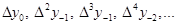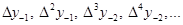 де Отримані кінцеві різниці будемо називати кінцевими різницями першого порядку. З різниць першого порядку отримаємо різниці другого порядку: