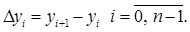 Кінцевими різницями називають різниці між значеннями функції в сусідніх вузлах (точках ) інтерполяції: