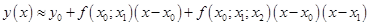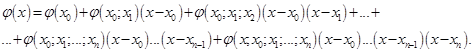 Оскільки в умові сказано використовувати лише розділені різниці другого і третього порядку, то формула Ньютона для нерівновіддалених вузлів (1. 7. 5) матиме вигляд: