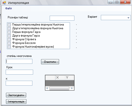 Для запуску програми «InterPolation» потрібно відкрити папку Release і запустити InterPolation.ехе. В результаті з’явиться вікно програми (мал. 2).