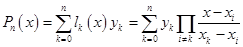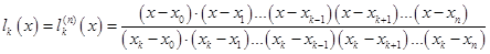 Поліном приймає значення в точці і рівний нулю у всіх останніх вузлах при . Звідси випливає, що інтерполяційний поліном: