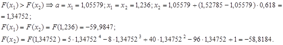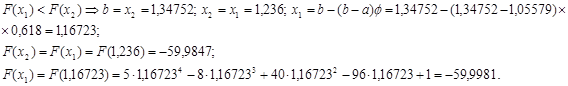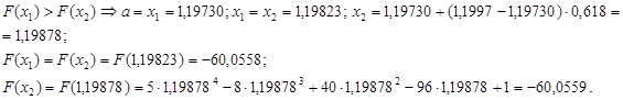 – точність пошуку, і тоді в якості точки локального мінімуму можна наближено прийняти середину відрізку .