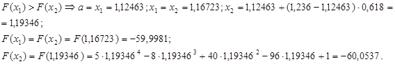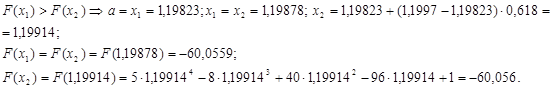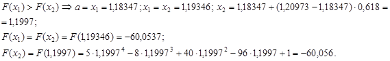 , являється процедурою послідовного пошуку мінімуму фунуції. Нехай визначено відрізок , якому належить точка локального мінімуму х