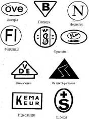 На рис. 1 наведені знаки відповідності, якими маркірують безпечні електротовари на прикладі деяких країн Європи. Наявність такого знака дозволяє будь-якій країні заощадити значні суми при зовнішньоторговельних операціях. Тому країни прикладають зусилля для укладання відповідних договорів щодо визнання сертифікатів безпеки з рядом головних країн (США, Францією, Німеччиною, Ізраїлем, Сінгапуром тощо). За проставленим знаком покупець може самостійно відрізнити сертифікованій товар від несертифікованого або ж відповідно до Закону «Про захист прав споживачів» ознайомитися з документацією, яка супроводжує товар, що обов'язково повинна бути у продавця при продаж.