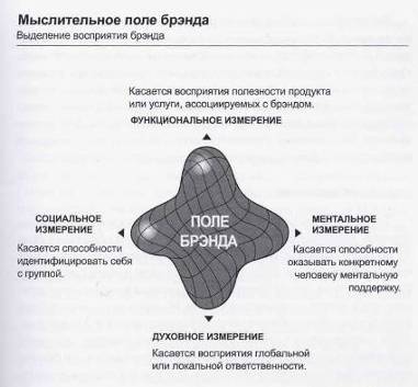 Построение брэнда в умах потребителей распадается на четыре различных категории, или «измерения». Они являются основой модели 4-мерного брэндинга.