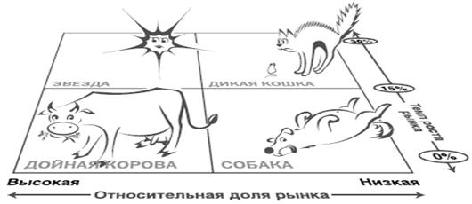 Фирма 1 занимает позицию "собаки" согласно матрице БКГ. "Собаки" представляют собой СХП с ограниченным объемом сбыта в сложившейся или сокращающейся отрасли. За длительное время пребывания на рынке этим СХП не удалось завоевать симпатии потребителей, и они существенно уступают конкурентам по всем показателям (доле рынка, величине и структуре издержек, образу товара и т.п.). Стратегия "Собаки" заключается в ослаблении усилий на рынке или ликвидации (продаже). Фирма, имеющая такое СХП, может попытаться временно увеличить прибыль путем проникновения на специальные рынки и сокращения обеспечивающего обслуживания или уйти с рынка.Фирма 2 занимает позицию "дойные коровы" согласно матрице БКГ."Дойная корова" занимает лидирующее положение в относительно стабильной или сокращающейся отрасли. Поскольку сбыт относительно стабилен без каких-либо дополнительных затрат, то это СХП приносит прибыли больше, чем требуется для поддержания его доли на рынке. Стратегия "дойной коровы" направлена на длительное поддержание существующего положения и оказание финансовой поддержки развивающимся СХП. Основные задачи этих СХП сводятся к предложению новых моделей товаров с целью стимулирования лояльных клиентов к повторным покупкам, периодической "напоминающей рекламе" и ценовым скидкам.Фирма 3 занимает позицию "звезды" согласно матрице БКГ."Звезды" занимают лидирующее положение в быстро развивающейся отрасли. Они приносят значительные прибыли, но одновременно требуют значительных объемов ресурсов для финансирования продолжающегося роста, а также жесткого контроля над этими ресурсами со стороны руководства. Стратегия "звезды" направлена на увеличение или поддержание доли на рынке. Основная задача фирмы заключается в поддержании отличительных особенностей своей продукции при растущей конкуренции. По мере замедления темпов развития "звезда" превращается в "дойную корову".Список используемой литературы