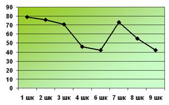б) мотивации успеха и боязни неудачи: мотивация на неудачу (боязнь неудачи) – от 1 до 7 баллов.