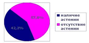У больных бронхиальной астмой обнаружилась невротическая астения с вероятностью 42,2%, что свидетельствует о высоком значении невротической истощенности, нестабильности в этиопатогенезе бронхиальной астмы. [см. прил. 3]