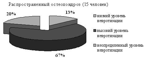 Предмет работы: взаимосвязь психологических и психофизиологических особенностей больных остеохондрозом с уровнем проявления болезни (шейным, поясничным и распространенным).