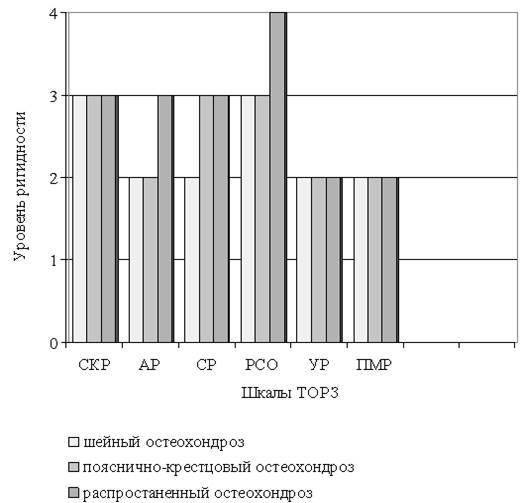 Приложение 6. Рисунок 3. "Усредненные уровни ригидности у больных остеохондрозом позвоночника"