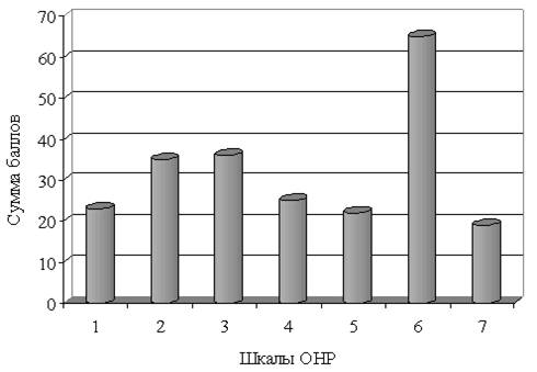 Рисунок 4. "Средние значения по методике ОНР больных остеохондрозом позвоночника".