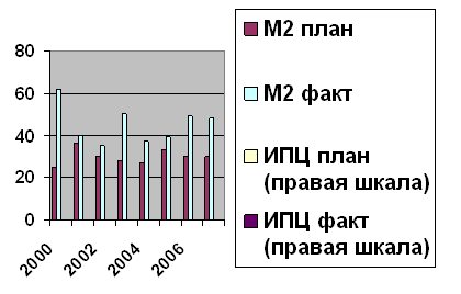 Рисунок 3 Темпы денежного агрегата М2 и ИПЦ, к декабрю предыдущего года