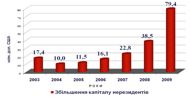 Рис.1.1 Збільшення капіталу нерезидентів по рокам
