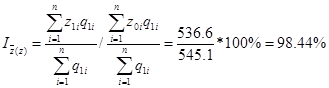 Таким образом, влияние четырех факторов определяется мультипликативной индексной моделью:
