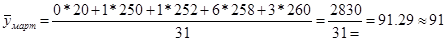 Фирма по производству керамических изделий была зарегистрирована и вступила в эксплуатацию с 21 марта. Списочное число работников на 21 марта - 250 человек, 22 марта - 252 чел.; 23 - 26 марта - 258 чел., 27 и 28 марта - выходные дни; 29 - 31 марта - 260 чел. Среднесписочное число работников за апрель - (265+8) 273 чел., в мае - (268+8) 276 чел., в июне - (272+8) 280 чел.
