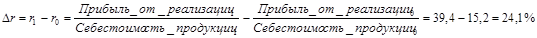 Абсолютное изменение рентабельности рассчитывается по формуле: