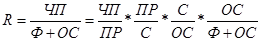 где а = ЧП/ПР коэффициент соотношения чистой прибыли и прибыли от реализации, b= ПР/С - рентабельность продукции; с = С/ОС - число оборотов оборотных средств; d= ОС / (Ф+ОС) - удельный вес оборотных средств в стоимости производственных средств.