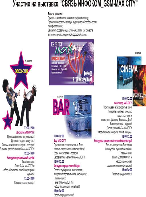 при помощи организации нестандартных акций, направленных на продвижение бренда GSM-MAX, можно укрепить позиции компании на рынке сотовой связи и расширить число потребителей;