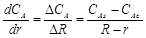Так як шар твердої речовини вчинює опір руху речовини А, то концентрація його біля ядра , якщо товщина шару твердого продукту невелика, то