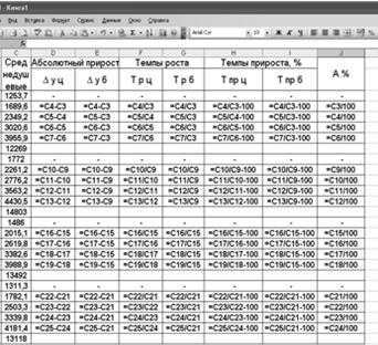 Расчетные формулы (1) – (5) в формате Excel представлены в таблице 3.