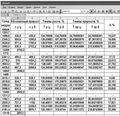 Статистические расчеты динамики денежных доходов населения выполнены с применением прикладных программ обработки электронных таблиц MSExcel в среде Windows.