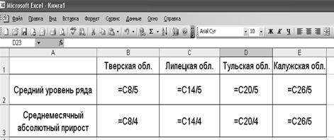 Расположение расчетных формул (6) – (7) (в формате Excel) представлено в таблице 5.