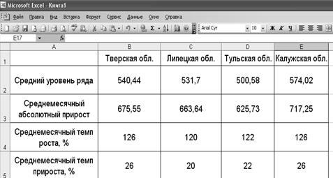 Расположение на рабочем листе Excel исходных данных (табл. 1) представлено в табл. 2.
