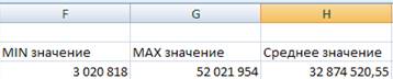 3. Определение минимального, максимального и среднего значения показателей с помощью формул: МИН, МАКС и СРЗНАЧ соответственно;