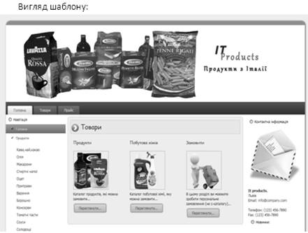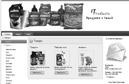 Створити веб - магазин по продажі товарів з Італії на локальному або ж віддаленому сервері,обробити тематичний дизайн сайту, та навігацію для користувача і адміністратора. Заповнити сайт товаром. Передбачено, що товар буде куплятися шляхом зв’язування клієнта з адміністратором або довіреною людиною за допомогою e-mail, isq, Skypeабо телефону, які будуть в розділі контактна інформація . Також створити розділ замовлень. Де користувач може залишити свій запит на товар, який по можливості буде додаватись на сайт.