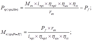Для этого по таблице 3 определяется сначала передача, которая при Мен дает наиболее близкое к заданному классу тяги значение тягового усилия Ркр. Две другие передачи выбираются из числа смежных с первой точкой.