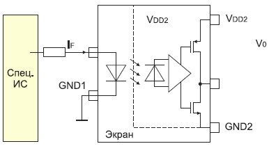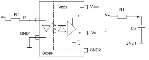 У светодиода в оптроне должен быть малый прямой ток, чтобы им можно было управлять напрямую, без внешних буферов, большинством микроконтроллеров или специализированных микросхем (рис. 1).