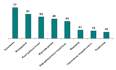 Наиболее востребованные области знаний: менеджмент, экономика, информатика, юриспруденция |