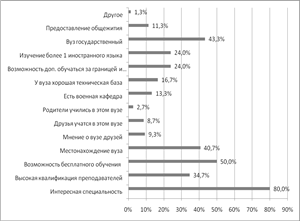 Определяющие факторы: интересная специальность, возможность бесплатного обучения, наличие аккредитации