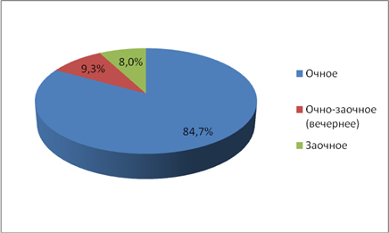 84,7% респондентов будут поступать на очное отделение и 9,3% на вечернее |