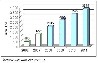 Рисунок 1 – Объем рынка рекламы в социальных сетях к 2011 году